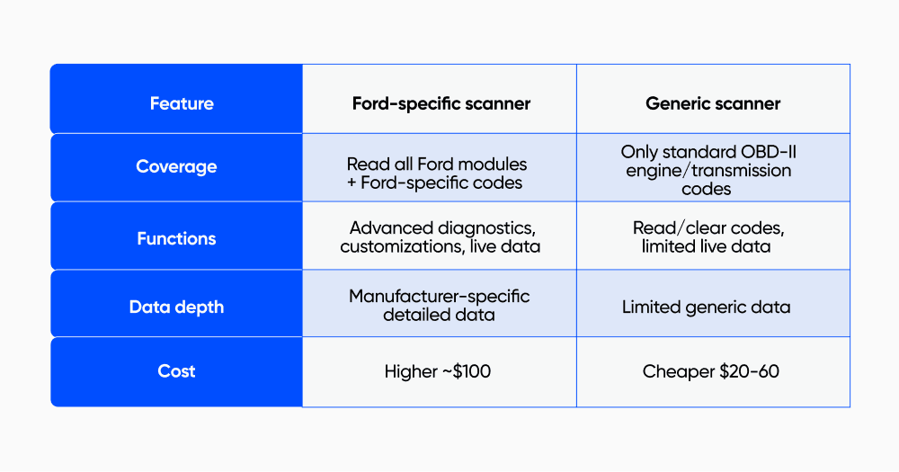 Generic scanners vs. Ford-specific scanner capabilities