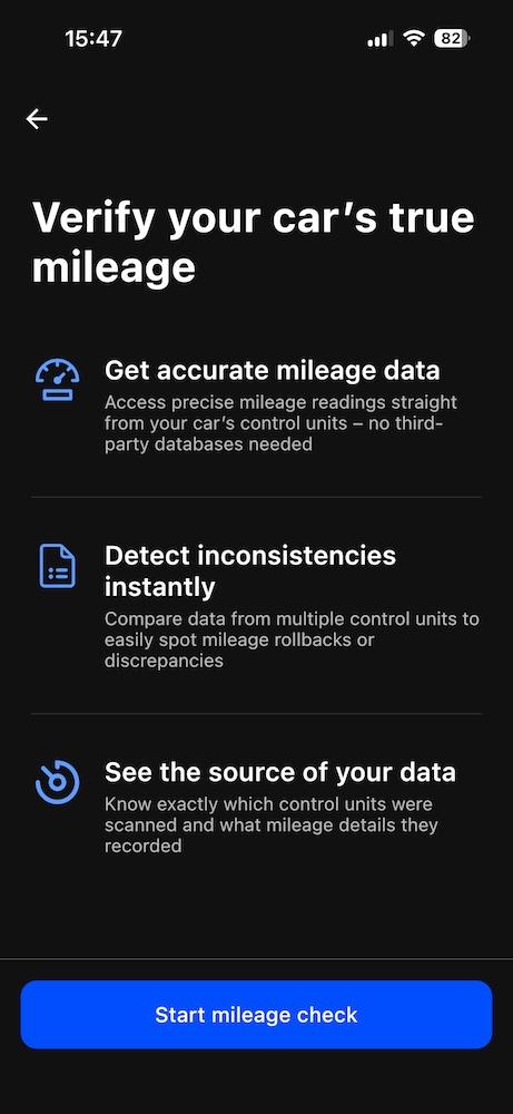 Mileage check is OBDeleven’s built-in app feature available with OBDeleven’s device. It’s one of the easiest ways to see if there’s something fishy going on with your odometer.