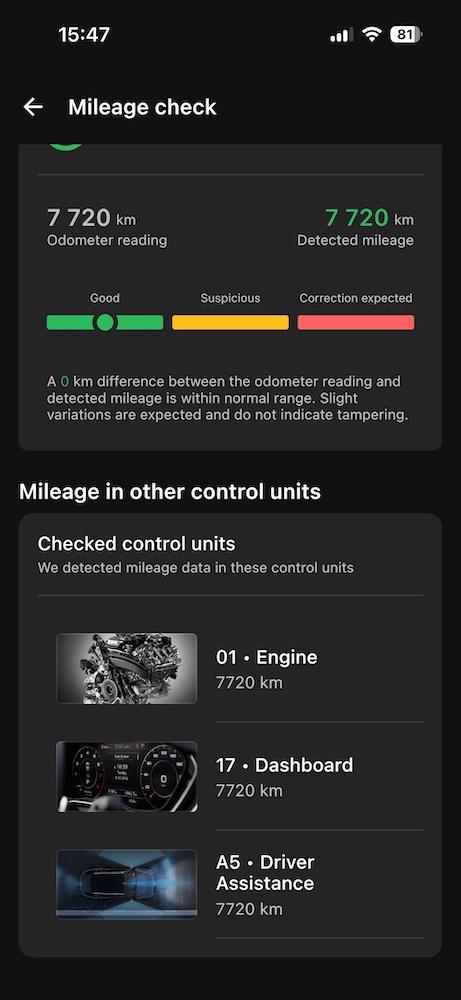 One thing to keep in mind – a mismatch doesn’t always mean fraud. It can also happen after a control unit has been replaced or reset. But it is a clear signal to ask more questions and investigate further before you buy.