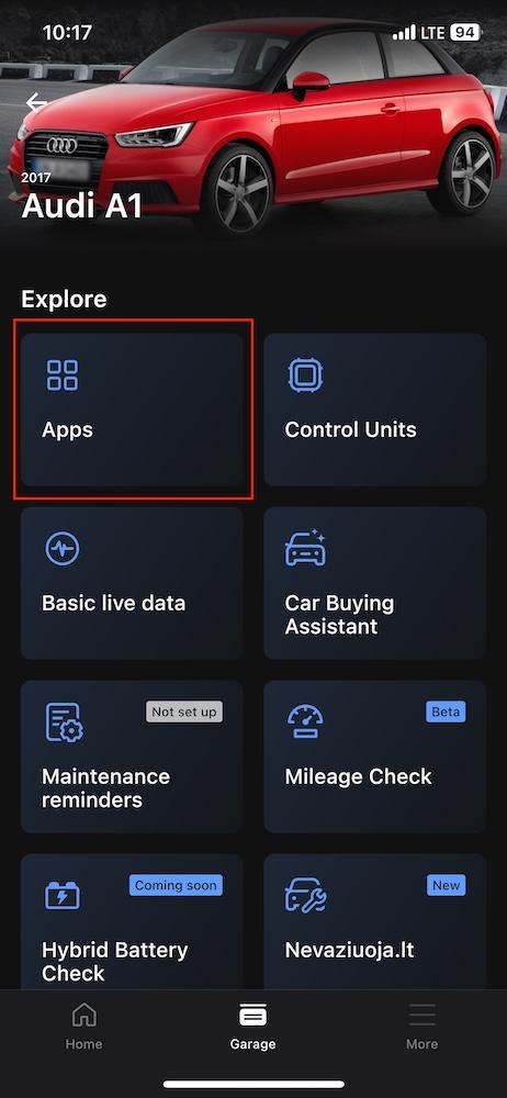 - Check if your vehicle has the required equipment. If you encounter a “Not supported” message, the chosen One-Click App may not find the necessary hardware or parts (LED lamps, for example).